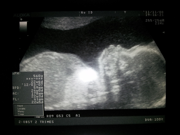 Ayer estaba el peque mucho más tranquilo, no se movía tanto como la eco anterior, de hecho estaba todo pachorrón como echándose la siesta. Pesa ya 560 gr!! maeee…
