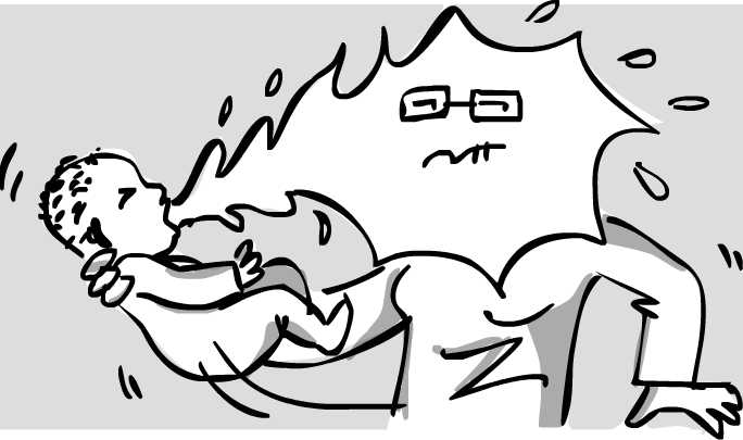 El pobrecico mío estaba pasando un día malo, estaba un poco tontorrón por que le costaba mucho hacer cacota, y por lo tanto no se acaba ni un bibe. Y en una de las tomas, intentando que echara el eructo, ZAAAAS!! me echó todo el bibe (que huele a rayos) por encima. Empezando por la cara, continuando por el cuerpo y acabando por el sofá.