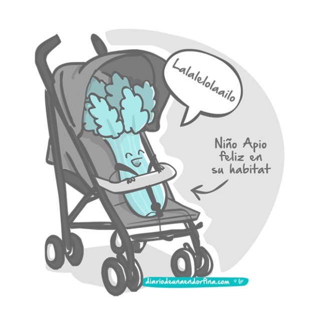 Mi Niño Apio podía estar en el carrito lo que quisieras y para meter al Niño Godzila en él, Dios y ayuda, luchas, contorsiones, escorzos apolíneos y giros de cuello tipo la niña del exhorcista. He de decir que una vez anclado en la sillita el pobre mío no sigue meneándose, entiende cuando ha sido derrotado y punto. Aunque la mirada de soslayo y de me he quedado con tu cara, te la lanza. Y gruñe. (Pero cuando le desanclas se lanza al vacío cual Jesús Calleja)