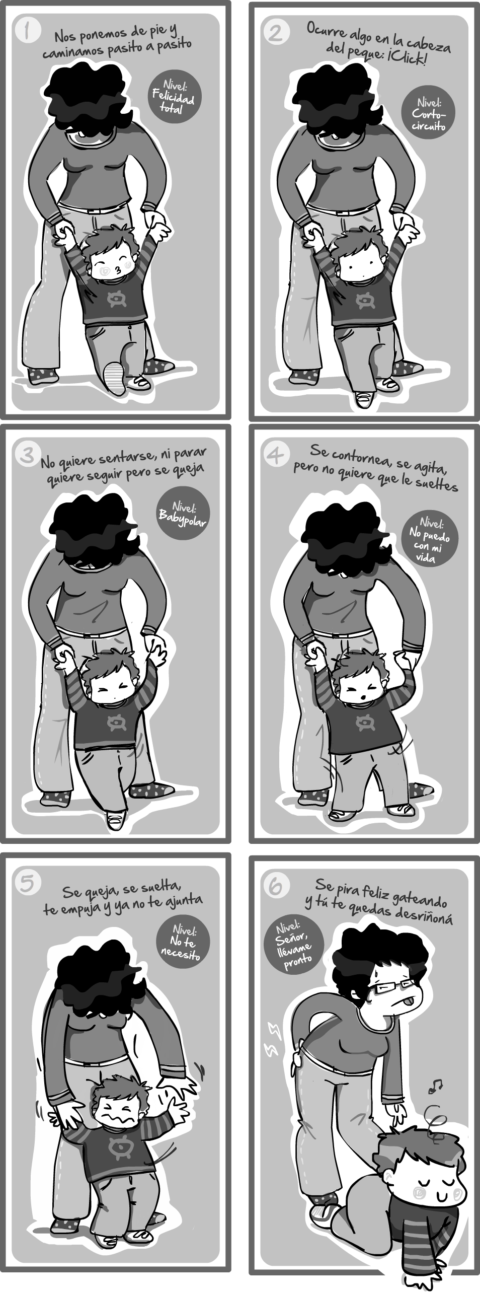 Ahora se va viendo cada vez más seguro en modo vertical y está pelín intrépido para mi gusto. Se escoña con facilidad, porque, todo hay que decirlo, anda rollo Fraga, balanceándose de un lado para otro.