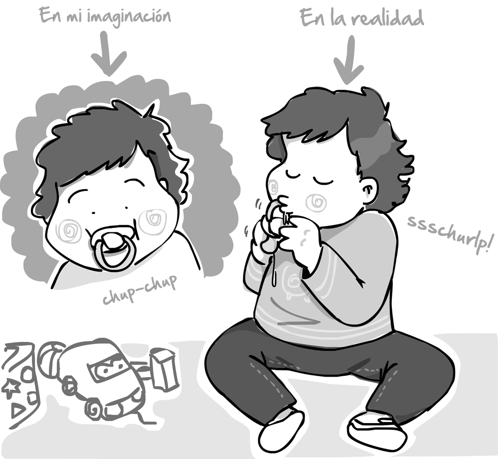 Cuando se lo puse en la boca, la cosa pintaba bien «Ay que me emociono» pensé «que va a agarrar un chupe A ver si le calma«… Cuando me di la vuelta, calmado estaba, desde luego, pero porque se había metido hasta la campanilla el asa del chupete. Me miró el angelico y esbozó una de sus sonrisotas. Y quien soy yo pa quitárle semejante placer, eh? Naide.