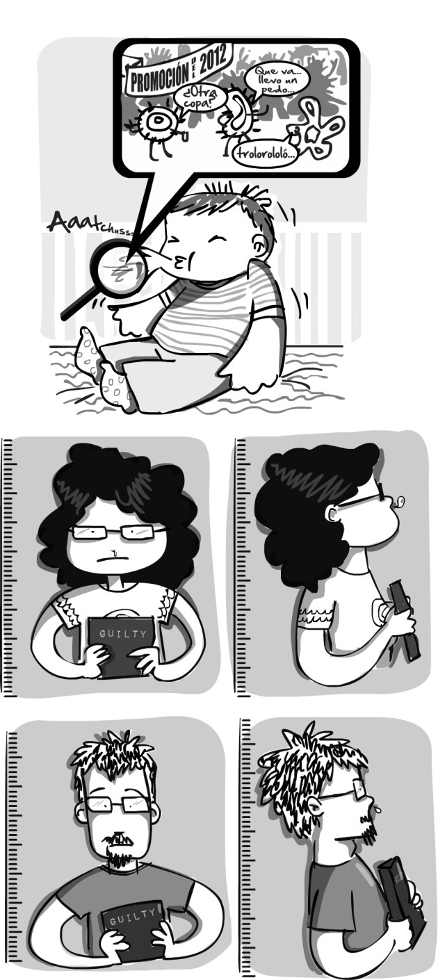 Llegaron con la fresca, se sentaron en el sofá, como los hombres de negro que daban el coñazo al pobre Neo, miraron alrededor, uno de ello hizo un deje con la cabeza recriminando la pila de ropa por planchar que yacía en una silla y el cabecilla eligió la primera víctima. Al padre de la criatura se le veía tiernito y lejano a catarro alguno, viendo impertérrito un debate futbolero en Marca Tv. «Pa’llá que vamos» se dijeron los Sres. Viruses.